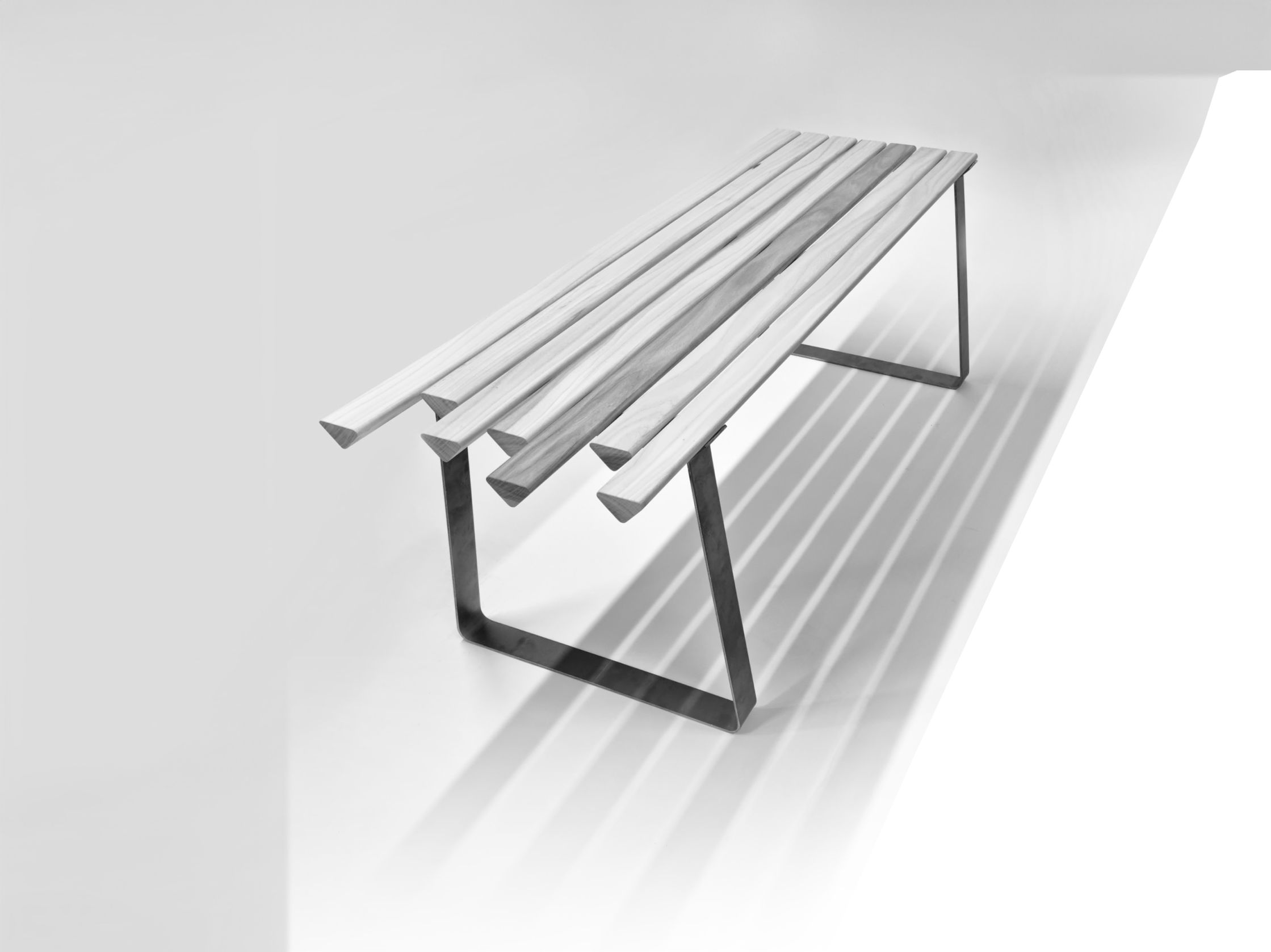 Das Ziel dieses Projektes ist es, diese meistens dreieckigen Holzabfälle vom Massivholzzuschnitt zu nutzen und so im Rahmen der Kreislaufwirtschaft eine Kaskadennutzung zu ermöglichen. Das Möbel kann je nach Material in Innenräumen als auch im privaten und öffentlichen Außenbereich Verwendung finden. Auch ein Tisch mit derselben Ausarbeitung wäre gut umsetzbar.