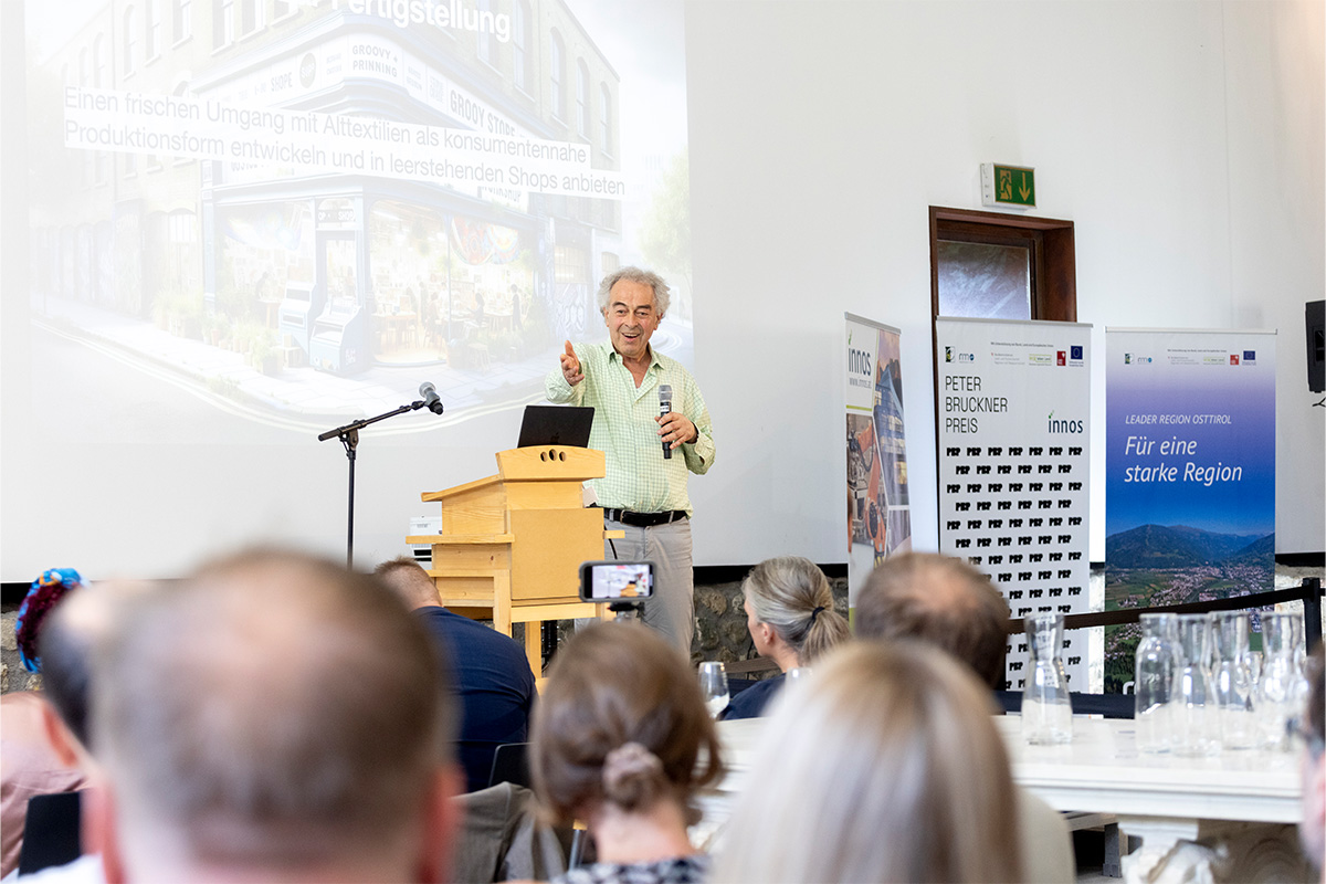 Rund 100 Gäste aus Handwerk, Design, Produktion und der Region folgten der Einladung der INNOS GmbH mit Michaela Spiess und Paula van der Woude zum feierlichen Auftakt des LEADER-Projekts „Design, Produktion & Transformation“. Inspirierende Impulsvorträge rund um Weiterbildung und das Zusammenspiel von Gestaltung, Material und Machbarkeit bildeten den Rahmen, bevor der Peter-Bruckner-Preis 2025 verliehen und die Ausstellung offiziell eröffnet wurde .Noch bis zum 7. September 2025 können die Projekte im Museum Aguntum besichtigt werden!
