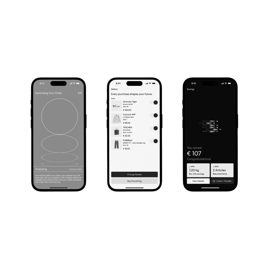 GRIT ist eine Shopping-Plattform, auf der Händler*innen ihre Produkte direkt verkaufen können. Eine App hilft den Nutzer*innen impulsives Kaufverhalten durch rationales Handeln auf Basis ihrer individuellen Ziele und Werte zu ändern. Produkte mit geringer Relevanz werden gezielt aussortiert. Die App bietet alternative Vorschlä- ge, wie das eingesparte Geld sinnvoll investiert werden kann. GRIT ermöglicht Stück für Stück die Kontrolle über das eigene Leben zurückzugewinnen. Ein Shopping-Erlebnis, das wieder Spaß macht und gleichzeitig das Gefühl vermittelt, die richtige Entscheidung getroffen zu haben. Man braucht nicht alles, sondern nur das Richtige.
